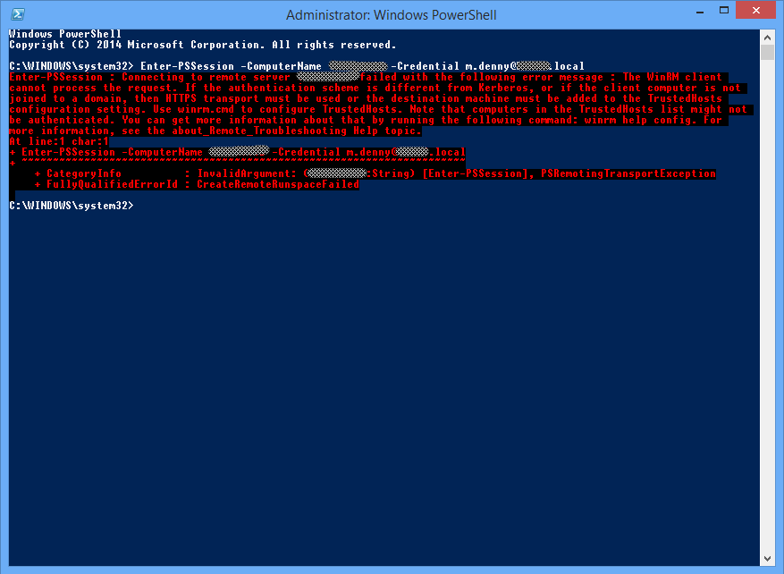 Today I was trying to Enter-PSSession on a remote machine, from my machine that is not joined to the same domain, and I start getting all kind of authentication error. Basically the problem reside on YOUR machine, not on the server, windows server 2012 has the remoting enabled by default (of course you need to open firewall as well), so what’s the problem? By default, local machine allow remote ps only using Kerberos, and to allow other kind of connection you need to trust the remote machine, but how?